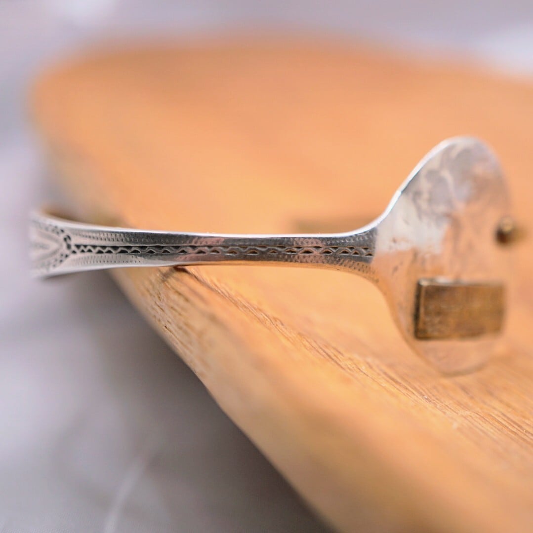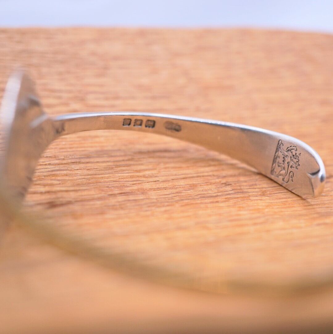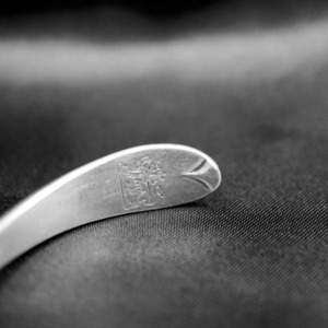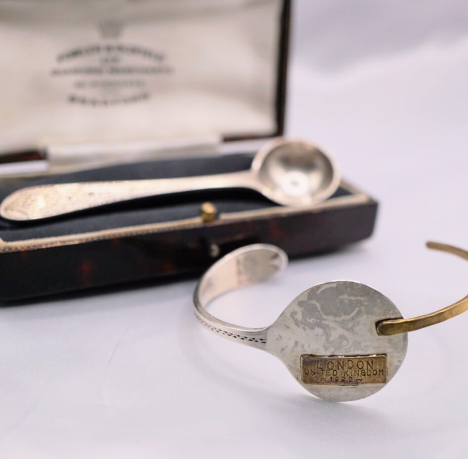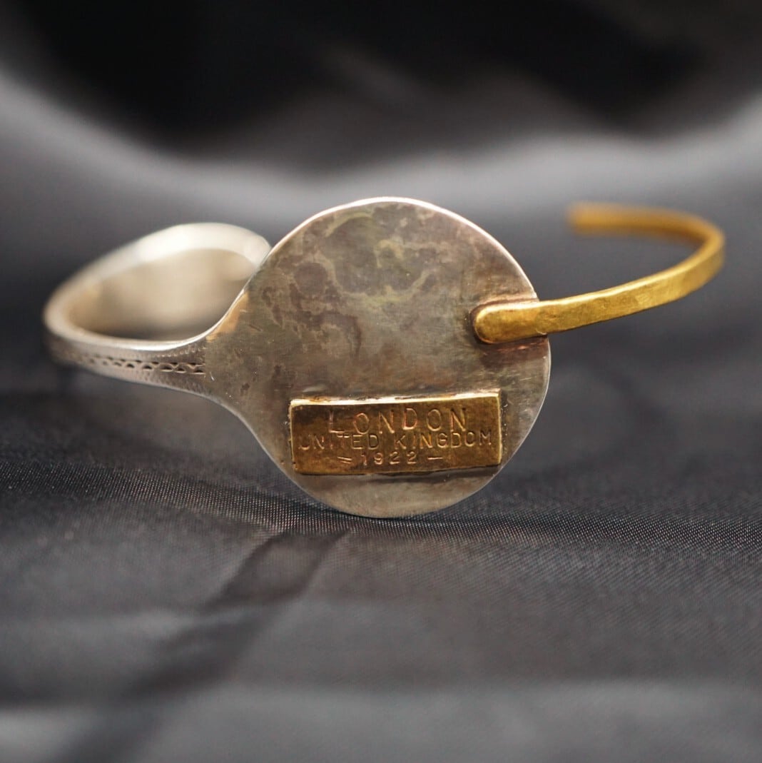 1922年にロンドンで製作されたアンティークスプーンを、真鍮製のアームと年号プレートを用いてバングルに仕立てました。