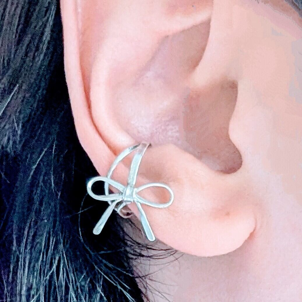 シルバー925製のリボンをモチーフにしたイヤーカフ。