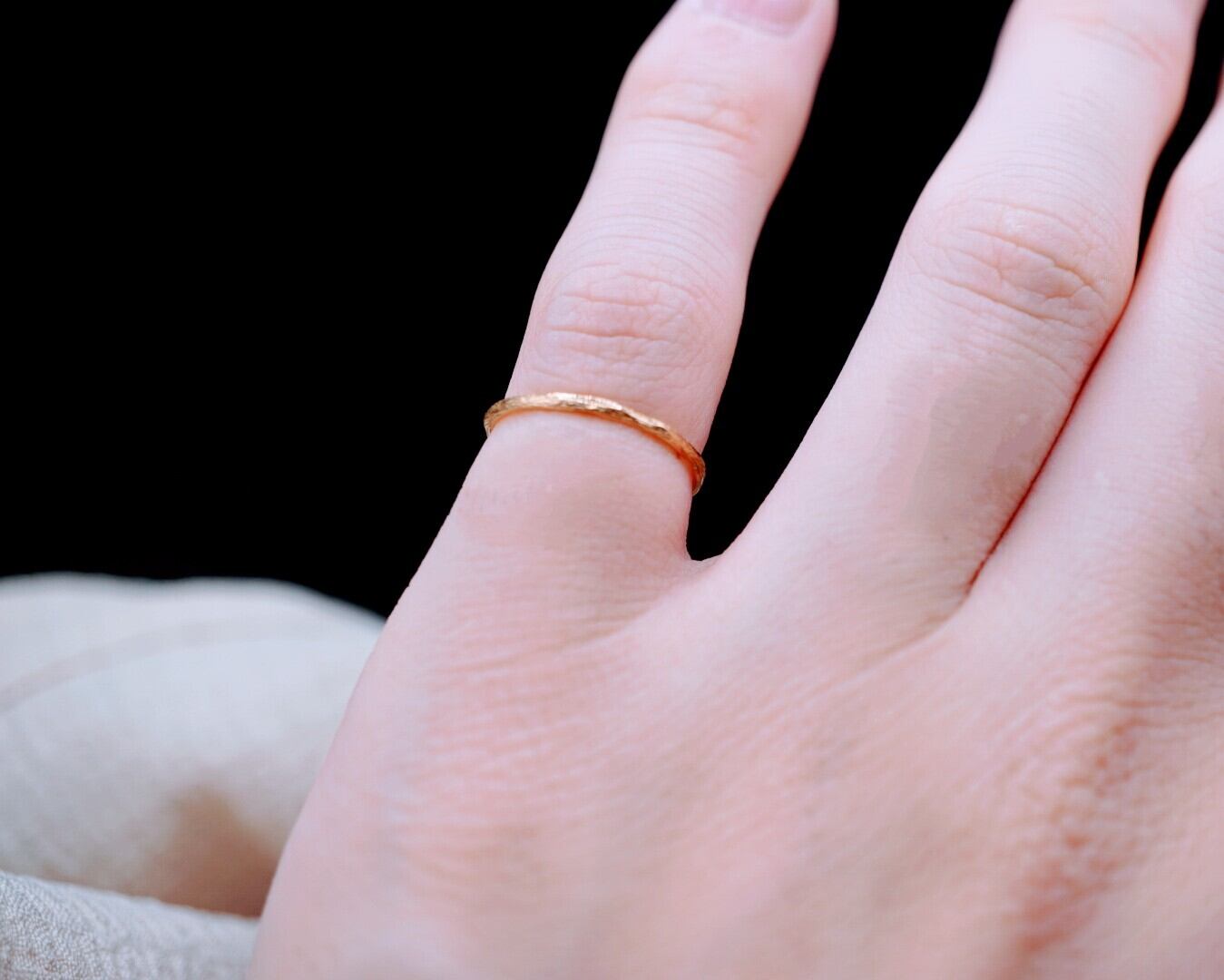 小枝を手折り、そのまま指に巻きつけたかのような素朴な美しさが魅力の木目リング。